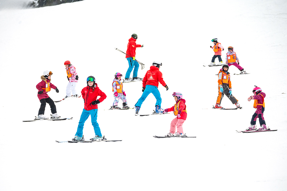 - Standardně se lekce celou dobu koná na samostatném plácku v rámci výcvikového areálu. Pouze v případě, že děti udělají dostatečné pokroky, mohou je instruktoři na konci lekce vzít na pojízdný pás. Skupina se přizpůsobuje nejméně pokročilému lyžaři.